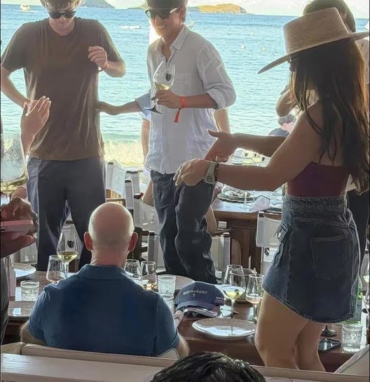 This winter, the world’s wealthiest group gathered around St. Barth’s and its environs. With hundreds of yachts in tow, and inhabitants ranging from Sergey Brin to Miriam Adelson, it was punctuated by a scene of Amazon founder Jeff Bezos and his wife having a frolicking time. What becomes important is not the wealth, nor the cast of characters, nor even the event itself, but the photo, the image, the virality, the short-lived moment that lives briefly in the scroll.